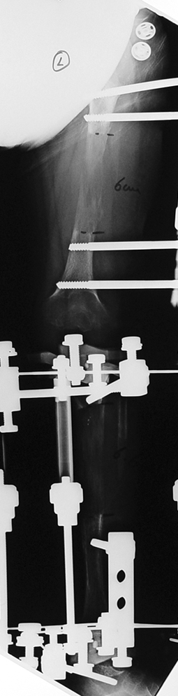 -a total of 10 cm lengthening at the femur and the tibia (6 cm femur and 4 cm tibia)