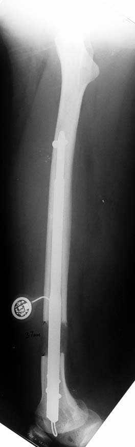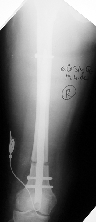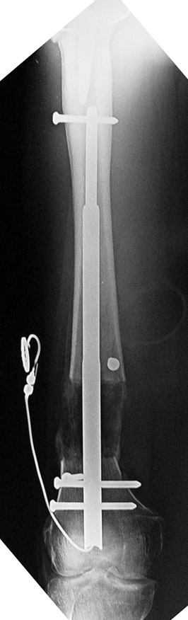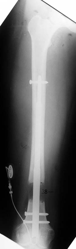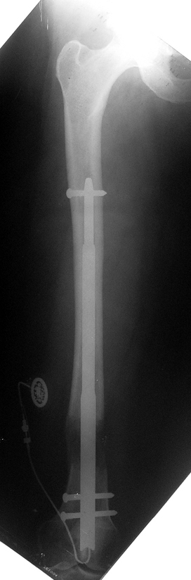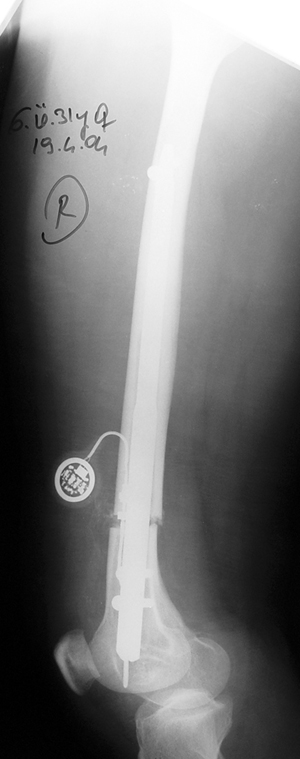 The patient controls the lengthening process. By pushing a button on the transmitter when it is placed against the antenna, the built-in motor extends the nail one millimetre per day. When the leg has grown to the desired length, lengthening stops, and the bone is allowed to solidify.