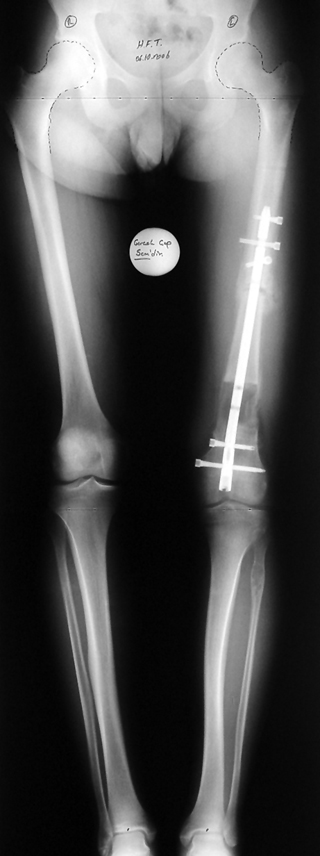 Bu Bacak Kısalık tipi bir kırığın kısalmış pozisyonda kaynaması ile oluşur. Bir çok vaka yetişkinlerde görülür ve sadece bir uzatma ile tedavi edilebilir. Ek deformiteler de aynı anda düzeltilebilir. Bu hastaların çoğu çivi üzerinden uzatma veya tam implante edilen çivi ile tedavi edilebilirler.