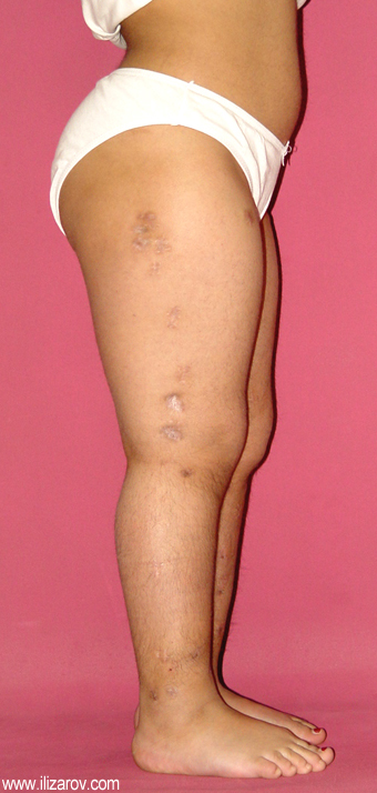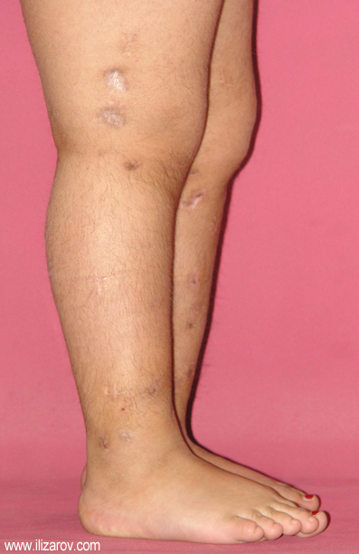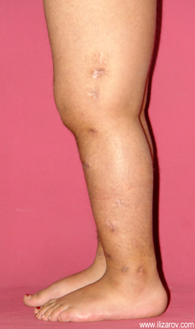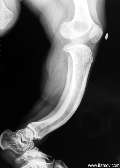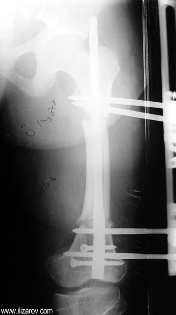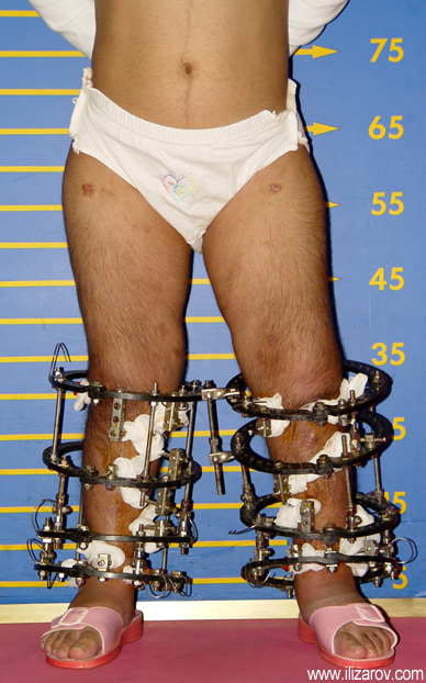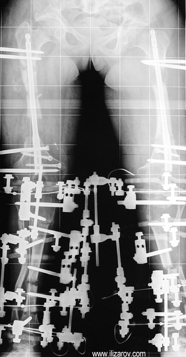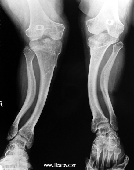 Because the deformity caused by hypophosphatemic rickets is very close to the growth plate, a significant deformity and malalignment occurs. For that reason, more than one deformity centers (CORA) are found at preoperative evaluation, and osteotomy at more than one level is required to correct the deformity. The most frequently used methods to correct the deformity are acute or gradual deformity correction using the Ilizarov method or unilateral external fixator. In the ‘fixator assisted nailing’ technique, which is applied in our department, the deformity is corrected in an acute fashion with the help of an external fixator, and the extremity is stabilized by an intramedullaru nail. The external fixator is removed before the end of the surgery if no gradual lengthening is planned postoperatively. If lengthening (over nail) is planned, the fixator is removed after the completion of the lengthening procedure. As a result, the risk of pin tract infection is eliminated, correction loss and relapsing of the deformity (which are important problems in the treatment of hypophosphatemic rickets) are avoided, eary motion and full weight bearing are allowed, and comfortability of the patient is improved because the duration with external fixator is decreased.